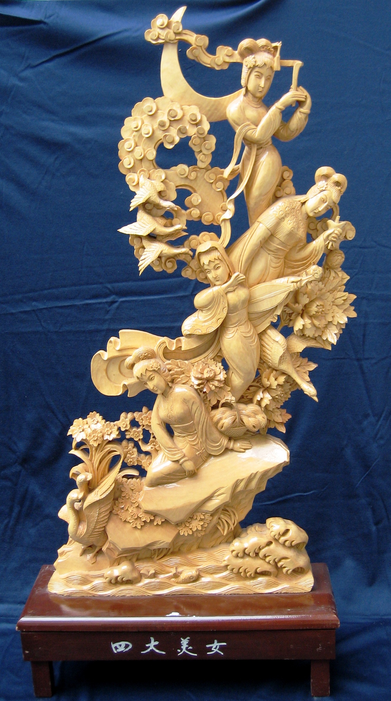Die vier Schönen waren die berühmtesten schönen Frauen der chinesischen Geschichte. zwei davon lebten im ersten Jahrtausend vor Chr.: XI SHI, wurde dem König von Wu vom Staat Yue geschenkt, wodurch Wu von Yue besiegt wurde. WANG ZHAOJUN wurde während der Han-Dynastie dem Hunnenkhan zu dessen Besänftigung geschenkt. Im ersten nachchristlichen Jahrtausend säte Ende der Han-Dynastie DIAO CHAN Eifersucht zwischen dem tyrannischen Kanzler und dessen Adoptivsohn.